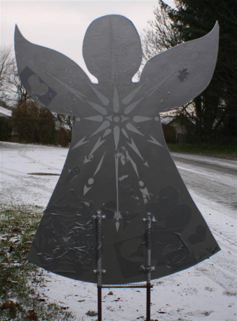 I 2010 foreslog jeg kunstforeningens bestyrelse, at vi igen fik lavet nogle engle, som kunne sættes op langs vejene i december måned. Uden penge lader det sig ikke gøre, så heldigvis har vi af Fur Brand fået støtte til at fremstille dem.