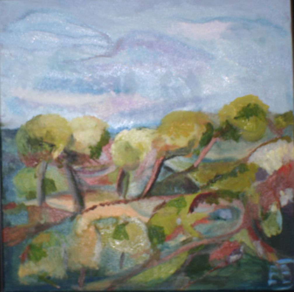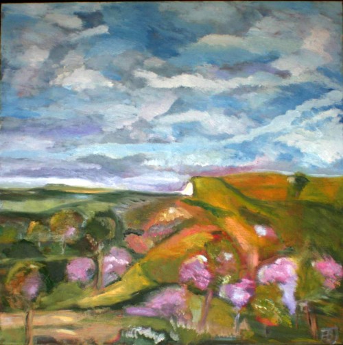 Ellen Bye Jensen lader sig inspirere af de konstant skiftende lysforhold i sine tolkninger af de kantede, laginddelte skrænter, de bølgende bakker, den skiftevis oprørte og blikstille fjord og skyernes hastige flugt på den høje himmel.